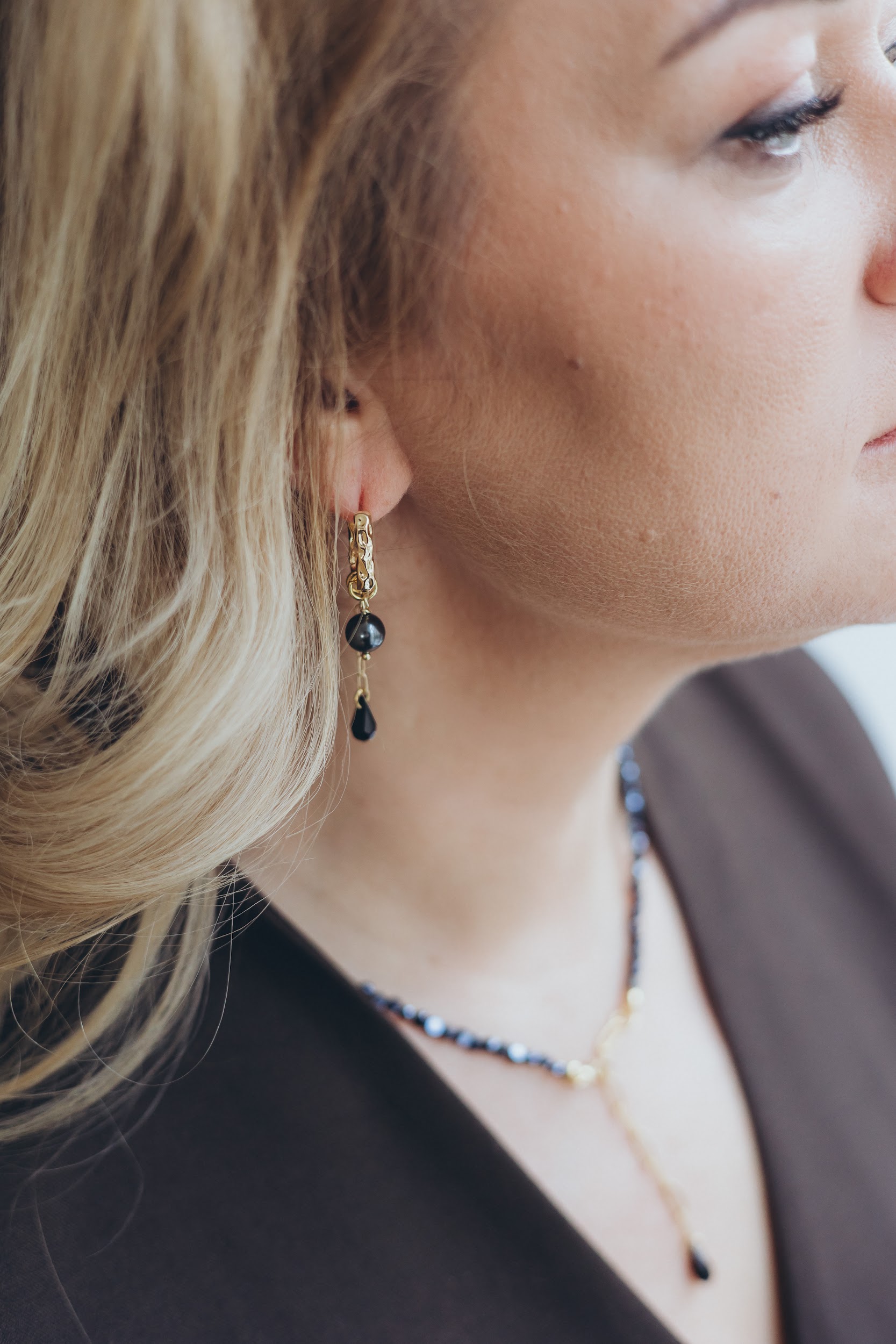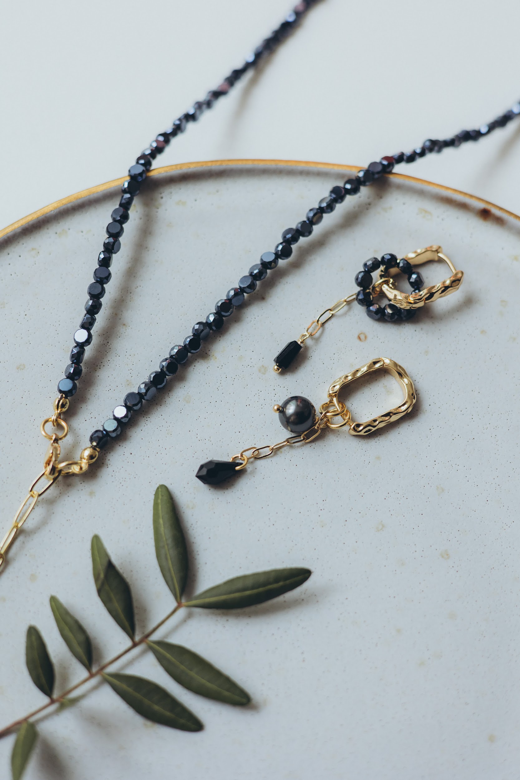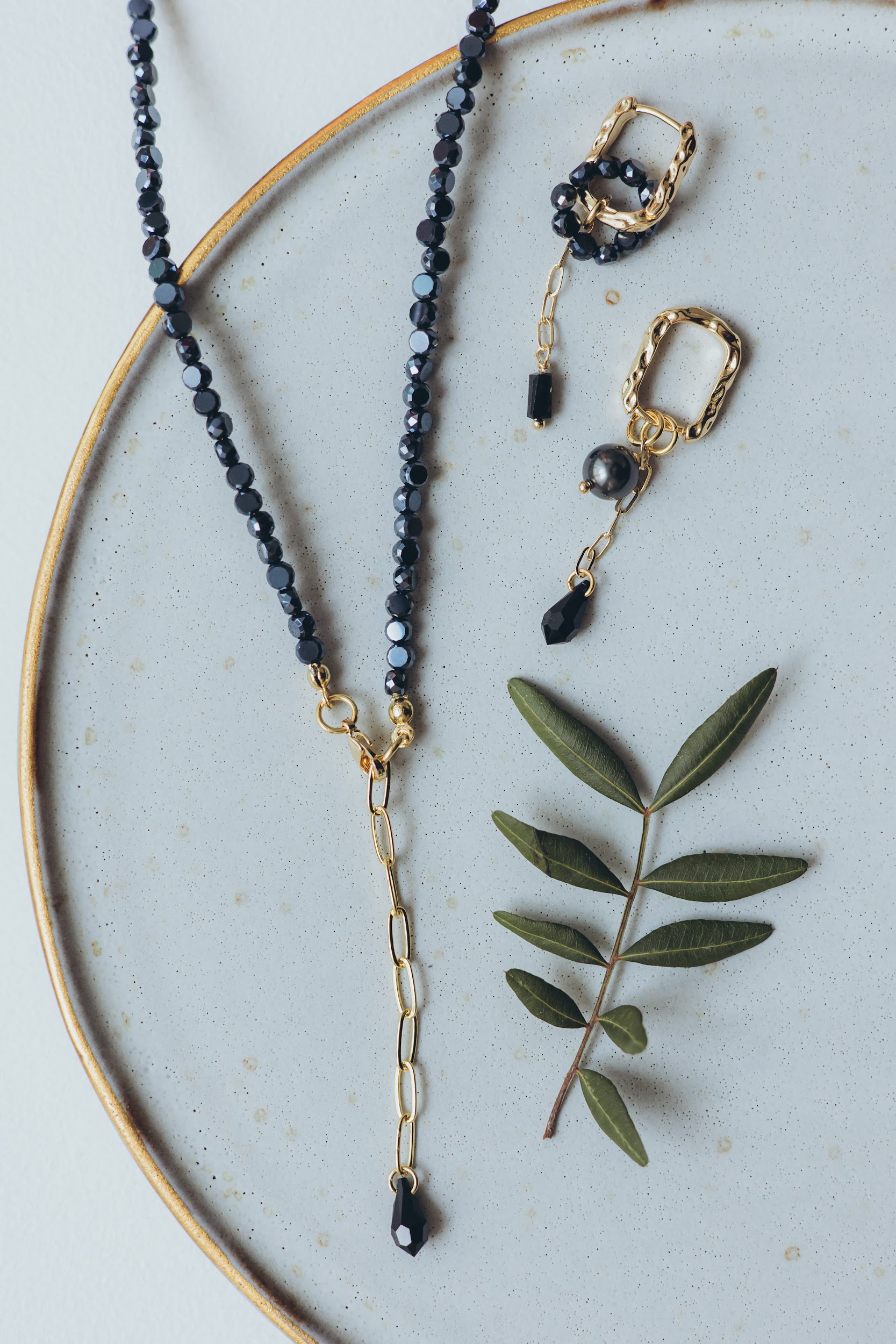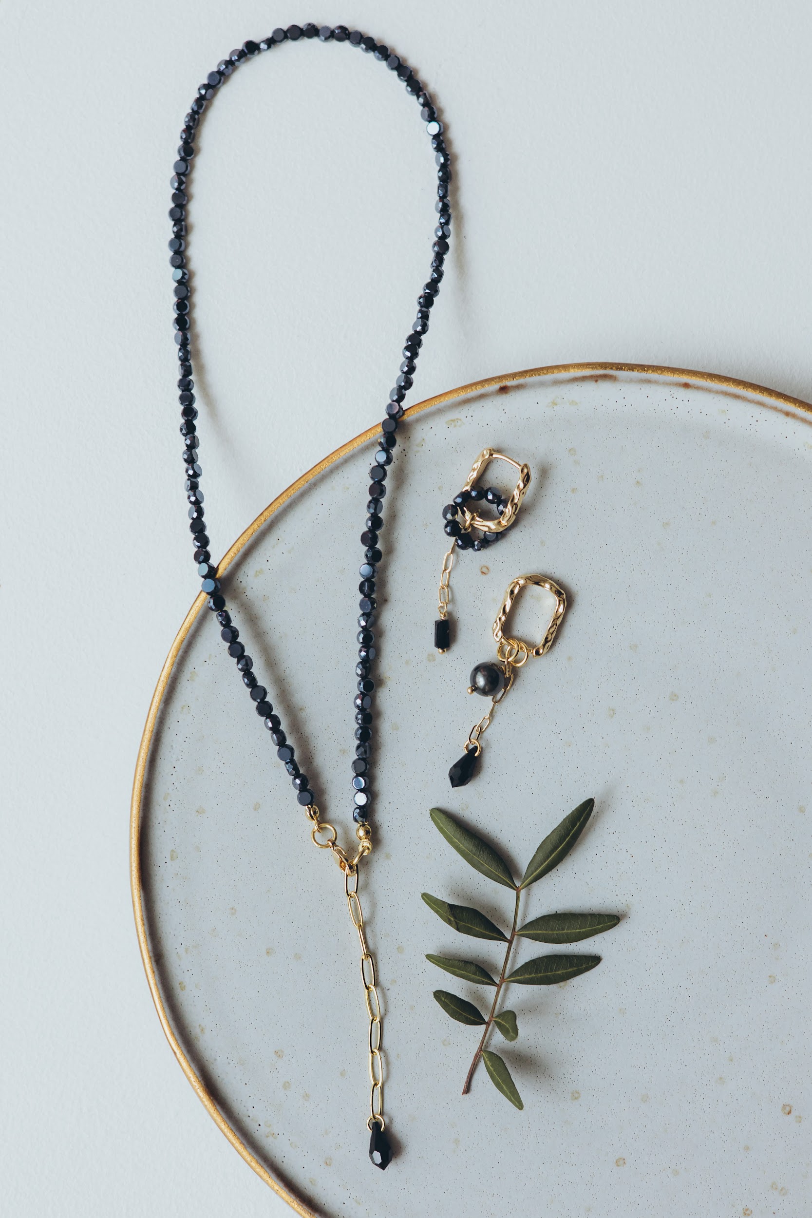 The finely cut black crystals subtly catch and reflect light, adding depth and a refined sparkle that enhances natural elegance. This versatile set perfectly complements both everyday wear and formal attire, providing a polished and feminine accent for any occasion- from casual days to evening events.