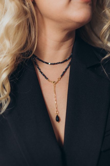 A stylish design necklace that adds a daring and modern touch to any outfit. Perfect for making a striking and confident style statement. Pendants can also be attached to the necklace clasp.